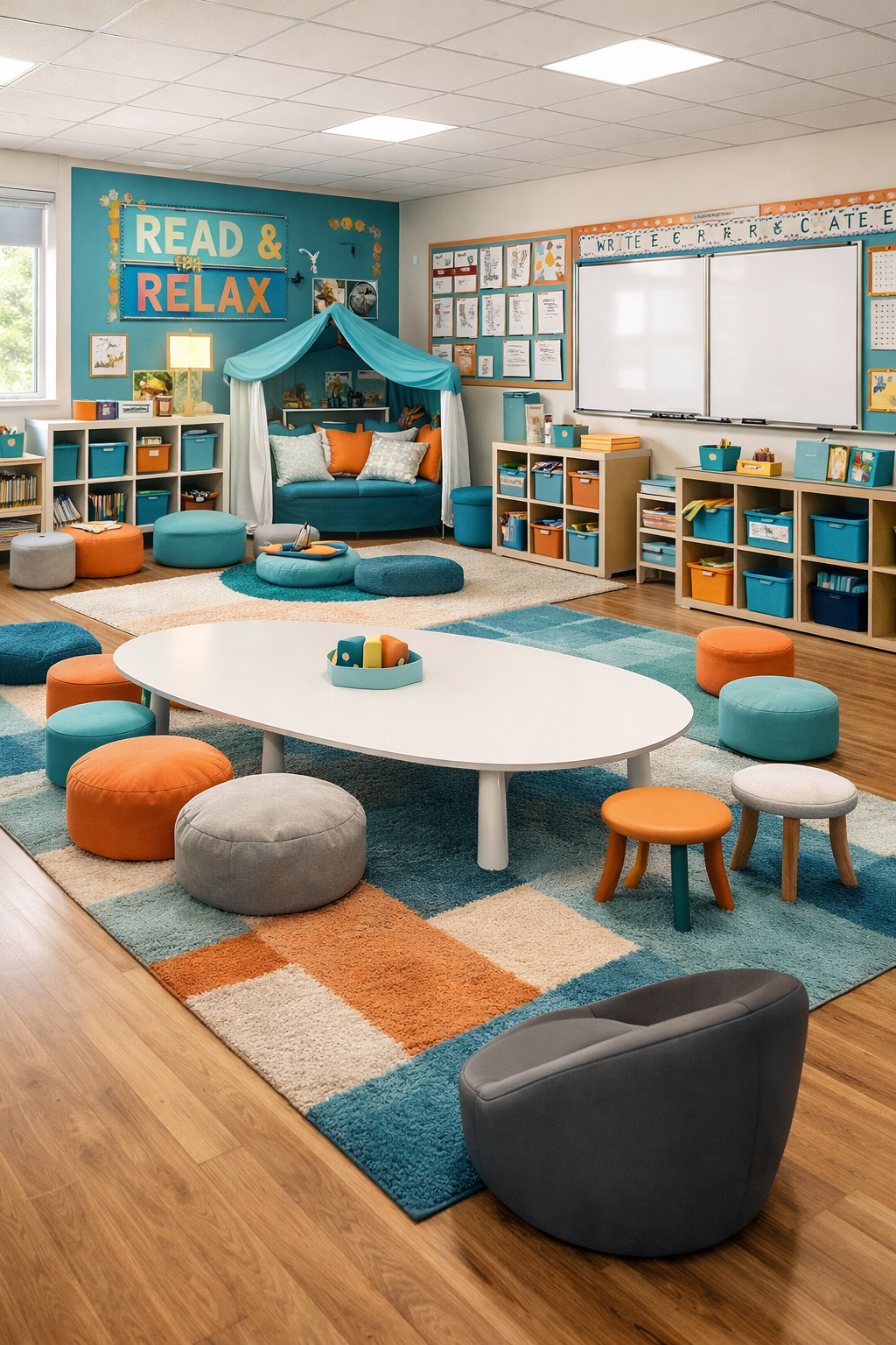 Salles lumineuses et modulables, équipées de tableaux interactifs et de mobilier mobile. Chaque élève choisit l’environnement qui stimule sa concentration et sa créativité.